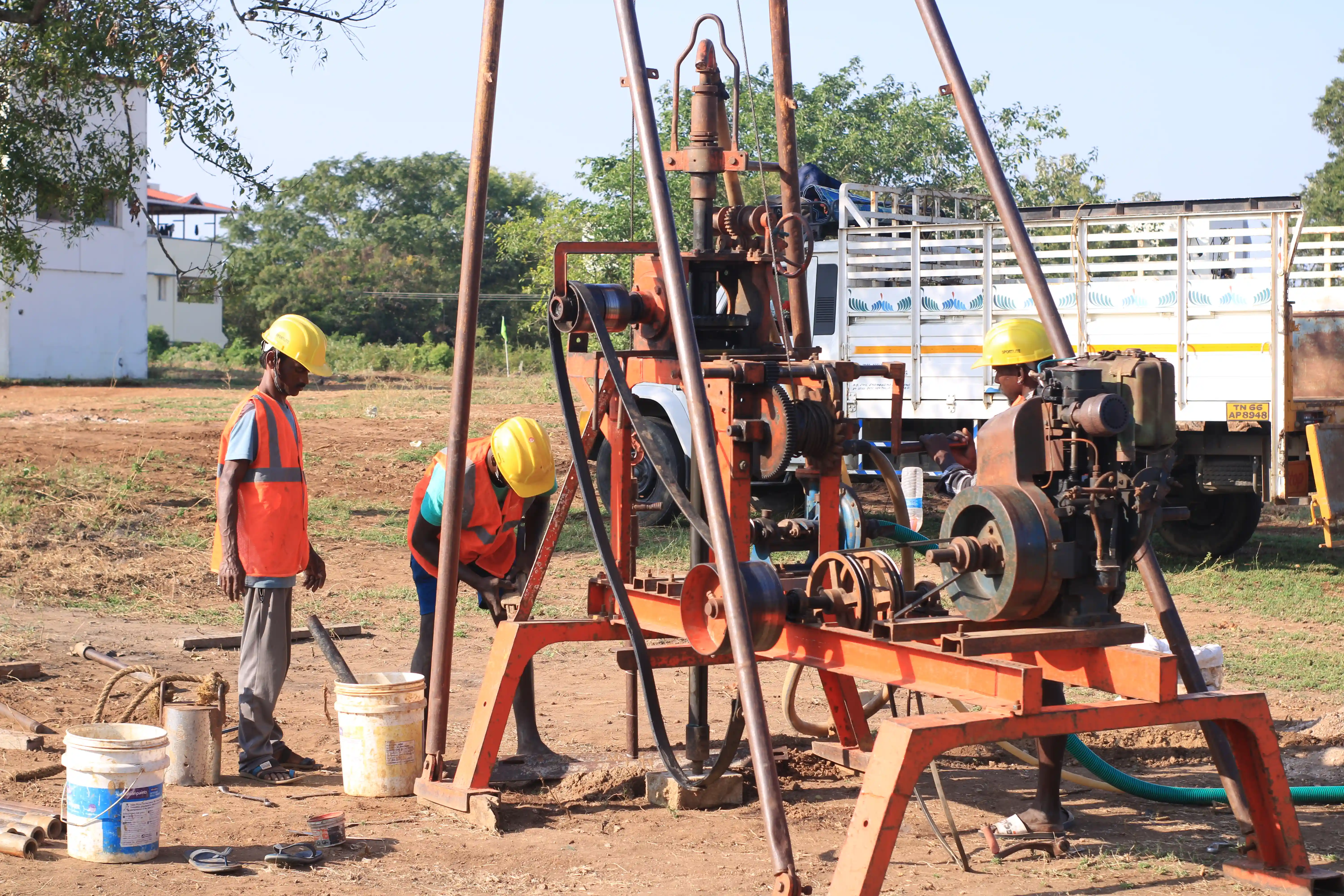 Advanced soil rig equipment is used to analyze soil strength and stability for construction projects.
